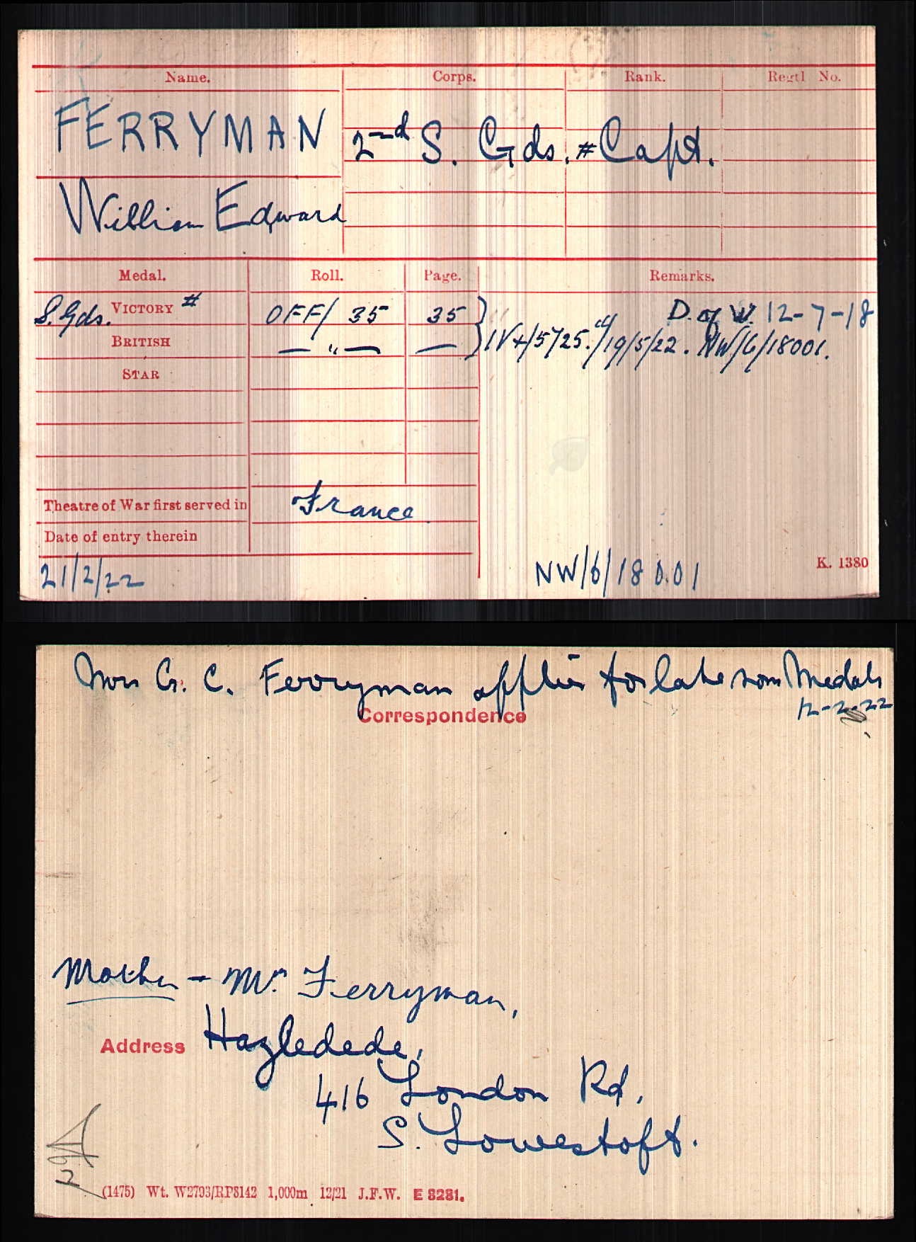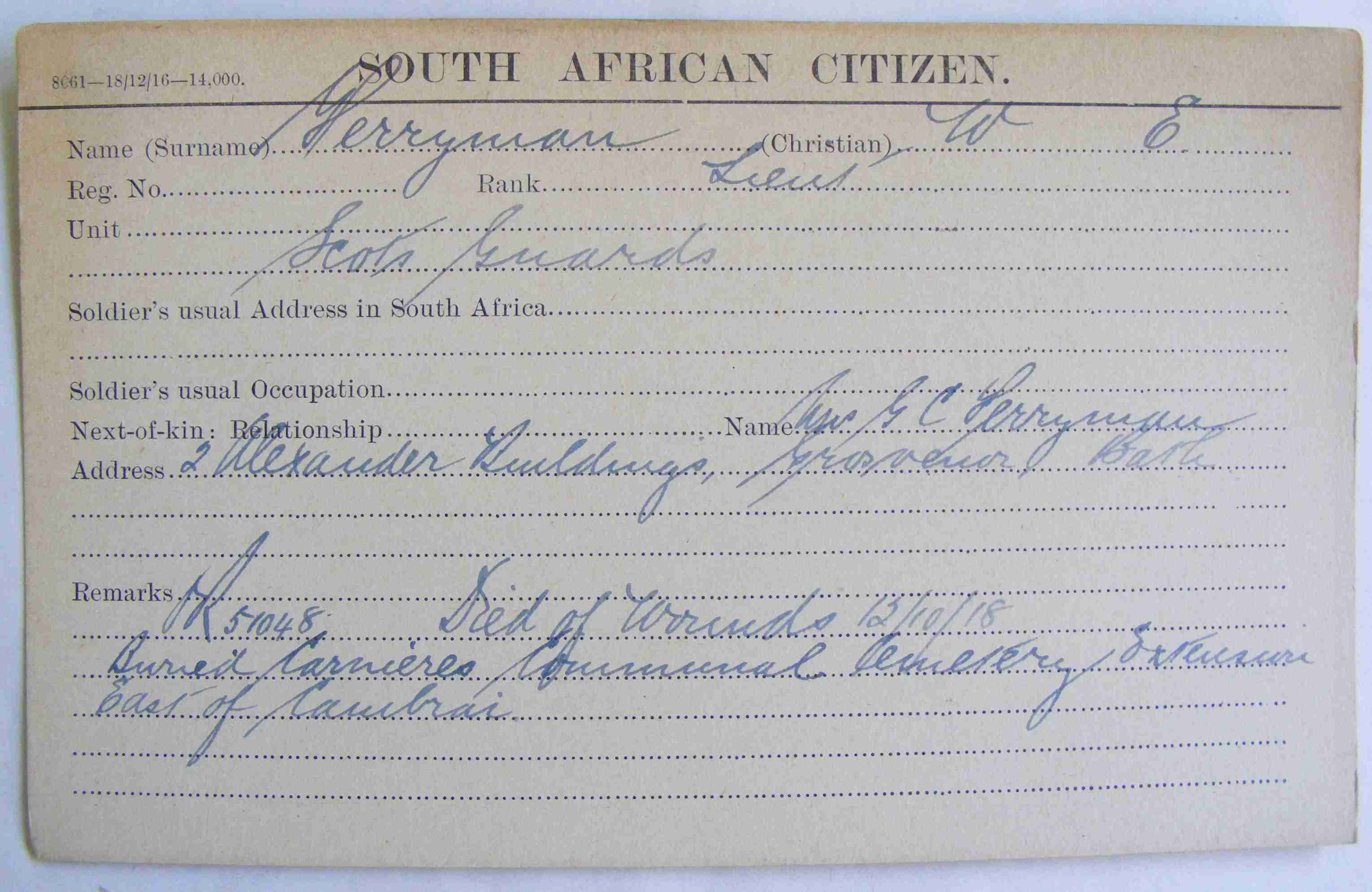 Son of Mrs. G. C. Ferryman, of 3, Alexander Buildings, Grosvenor, Bath. ref. South African Roll of Honour 1914-1918