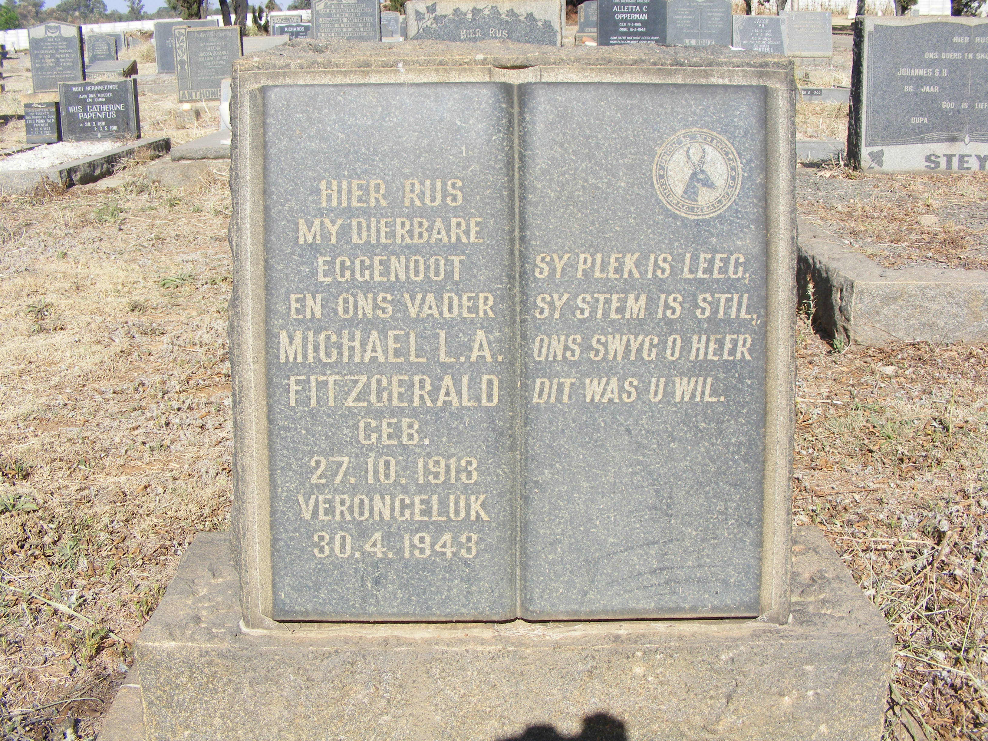 Son of William Fitzgerald and Mary Frances Cecilia Willemse and stepson of Jacobus Willemse; husband of Catharina Fitzgerald, of Kleinfontein.