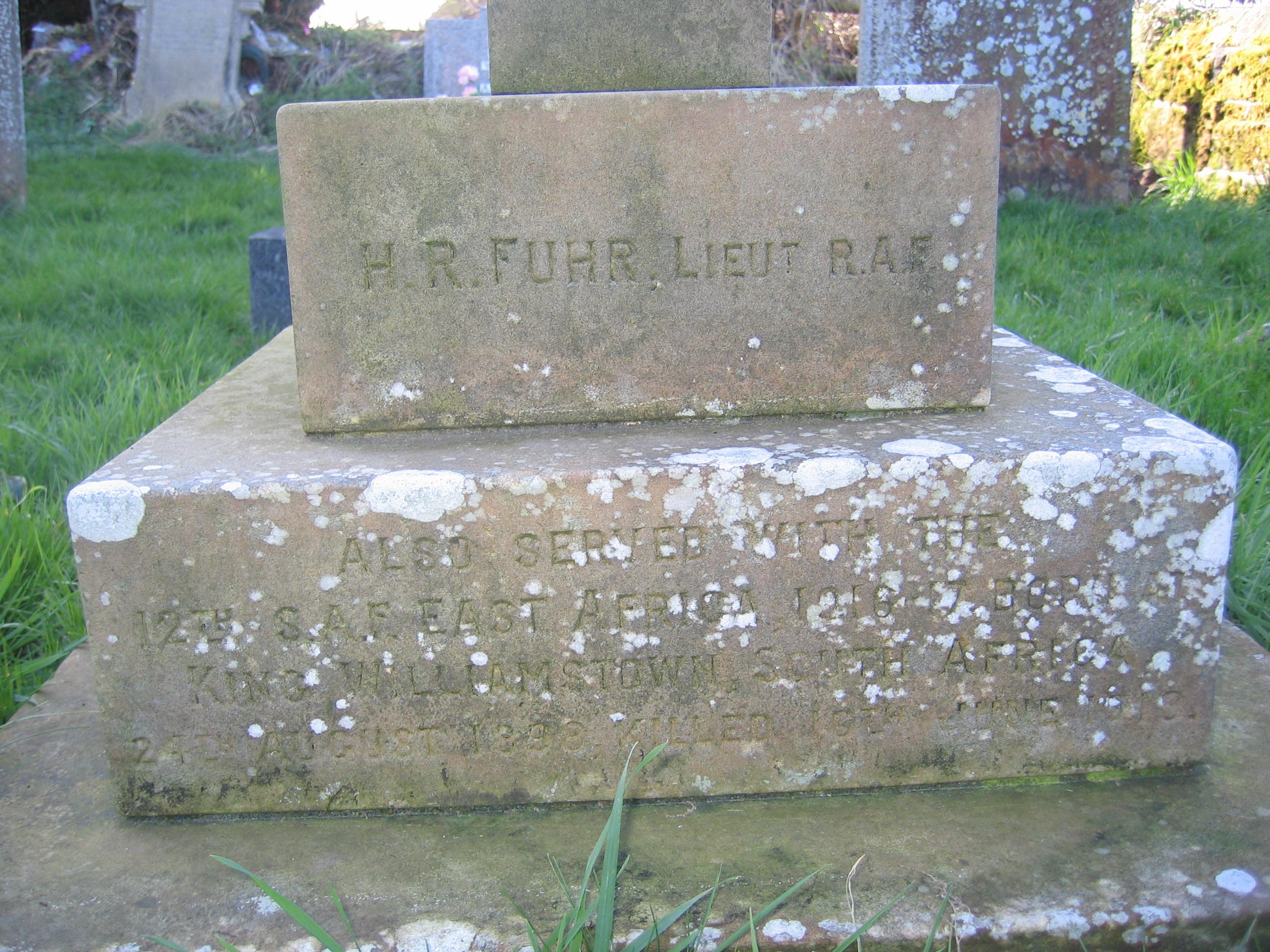 Eldest son of Harry Agustus Fuhr and Marie Elise Fuhr, of 31, Upper Albert Rd., King William's Town, Cape Province, South Africa. Born King William's Town. Also served in East Africa with 12th Regt. South African Inf.