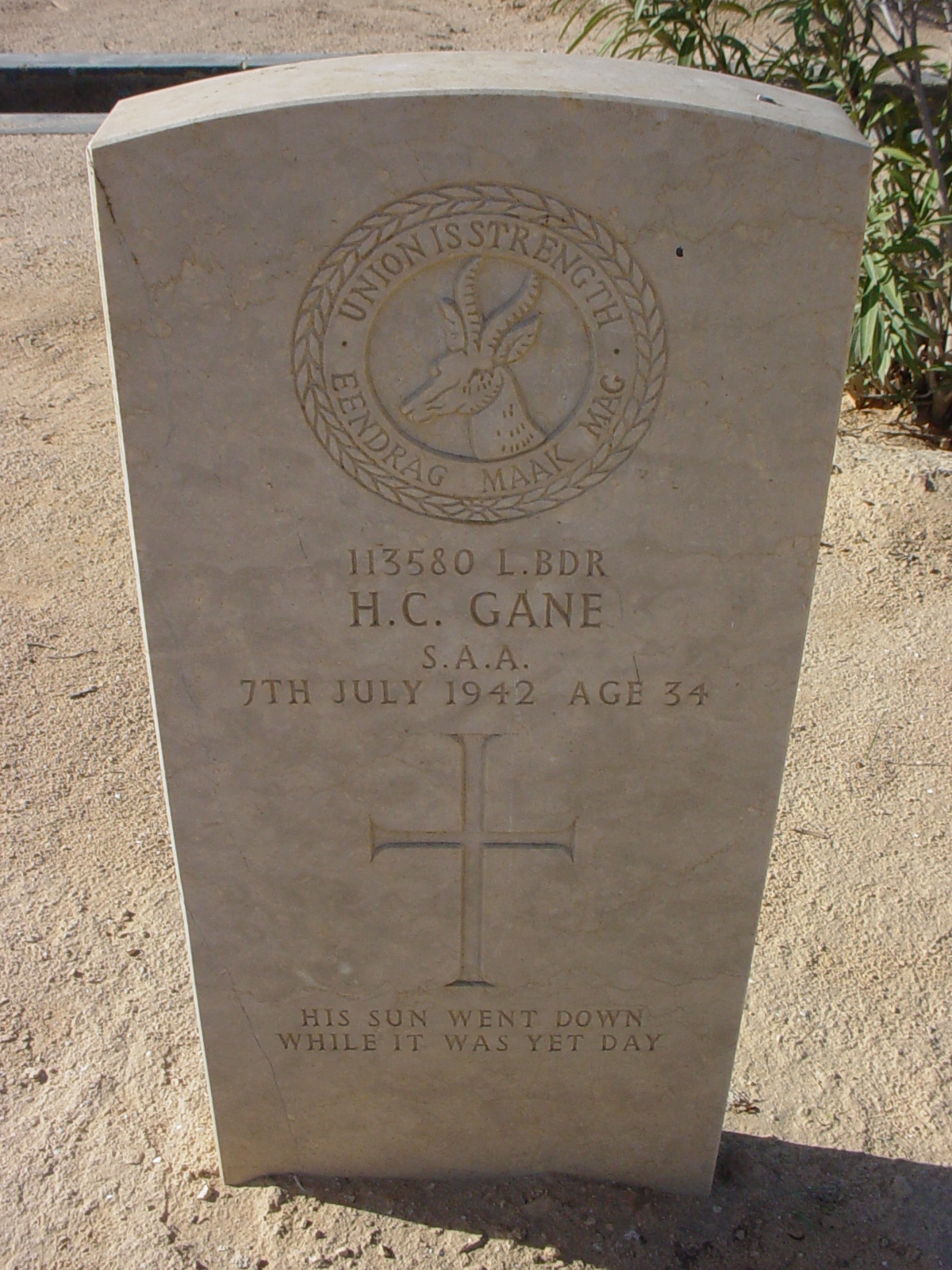 Son of Justice Percival Carleton, MBE and Emma Gladys Gane (nee Caldecott), of Grahamstown, Cape Province, South Africa; husband of Hulda Gane (nee Bester), of Grahamstown.
