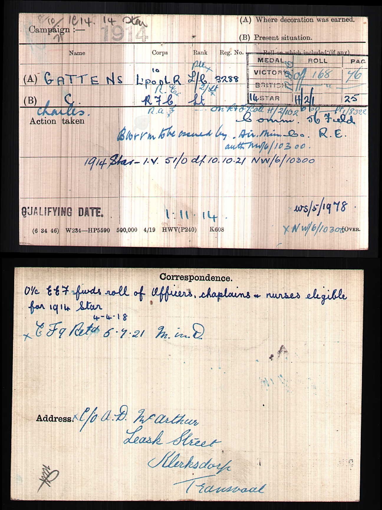 Son of John and Catherine Gattens, of Mallard St., Kensington, Johannesburg, South Africa.