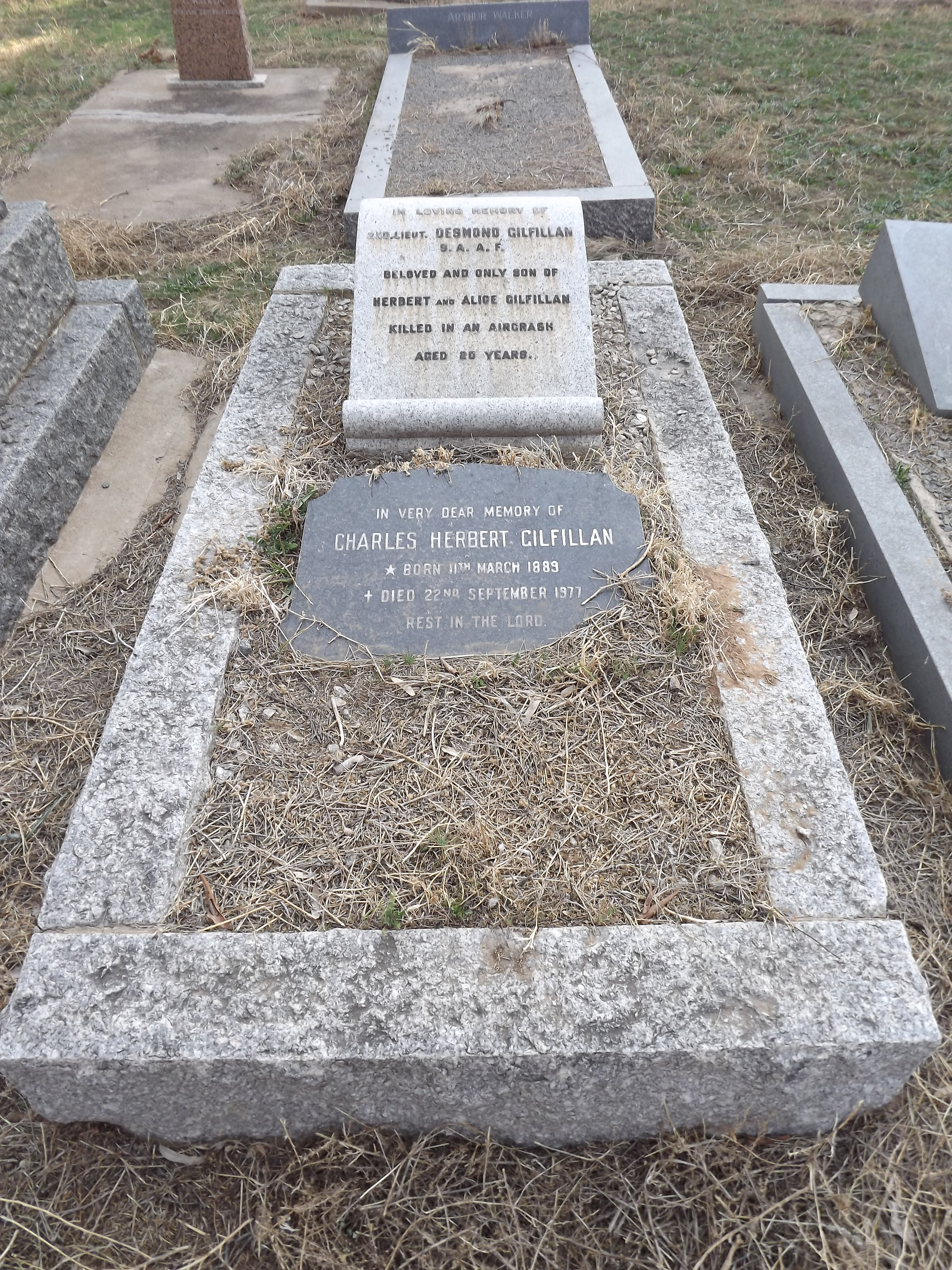 Son of Charles Herbert Gilfillan and Alice Maud Gilfillan, of Conway Station. Educated at St. Andrew's College, Grahamstown.