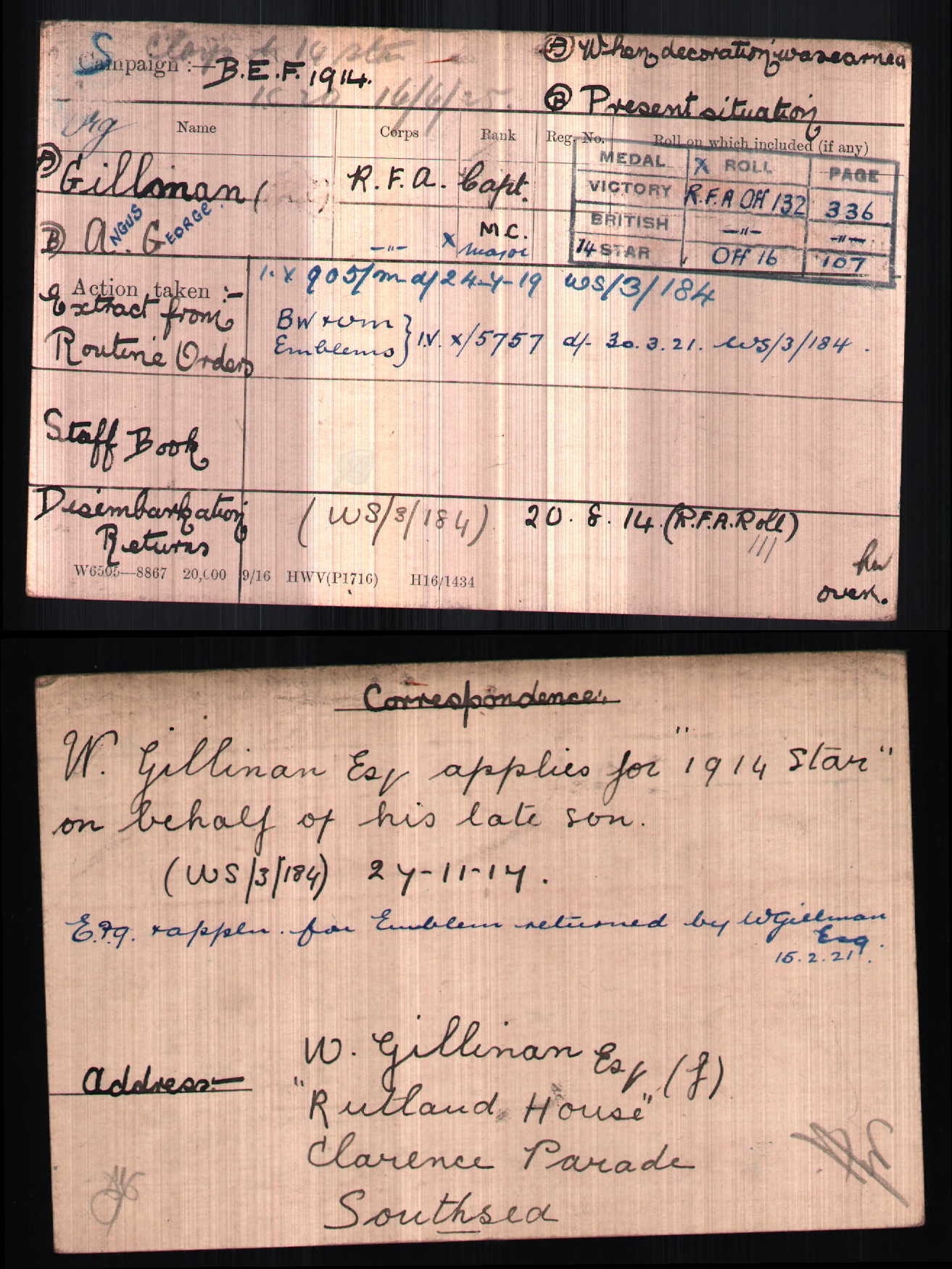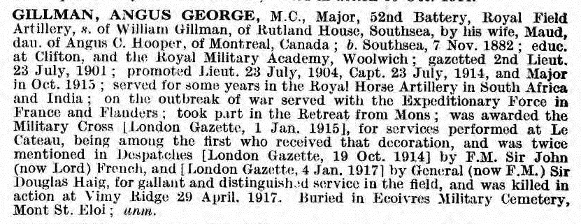 Son of William and Maud Gillman, of Portsmouth. ref. South African Roll of Honour 1914-1918 |