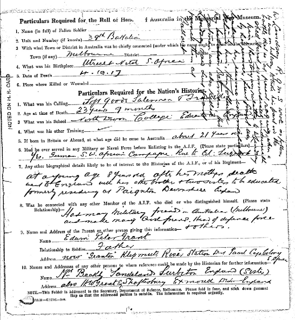 Son of Edwin Peter and Hettie Olive Grant, of Cape Town, South Africa. Native of Utrecht, South Africa. |