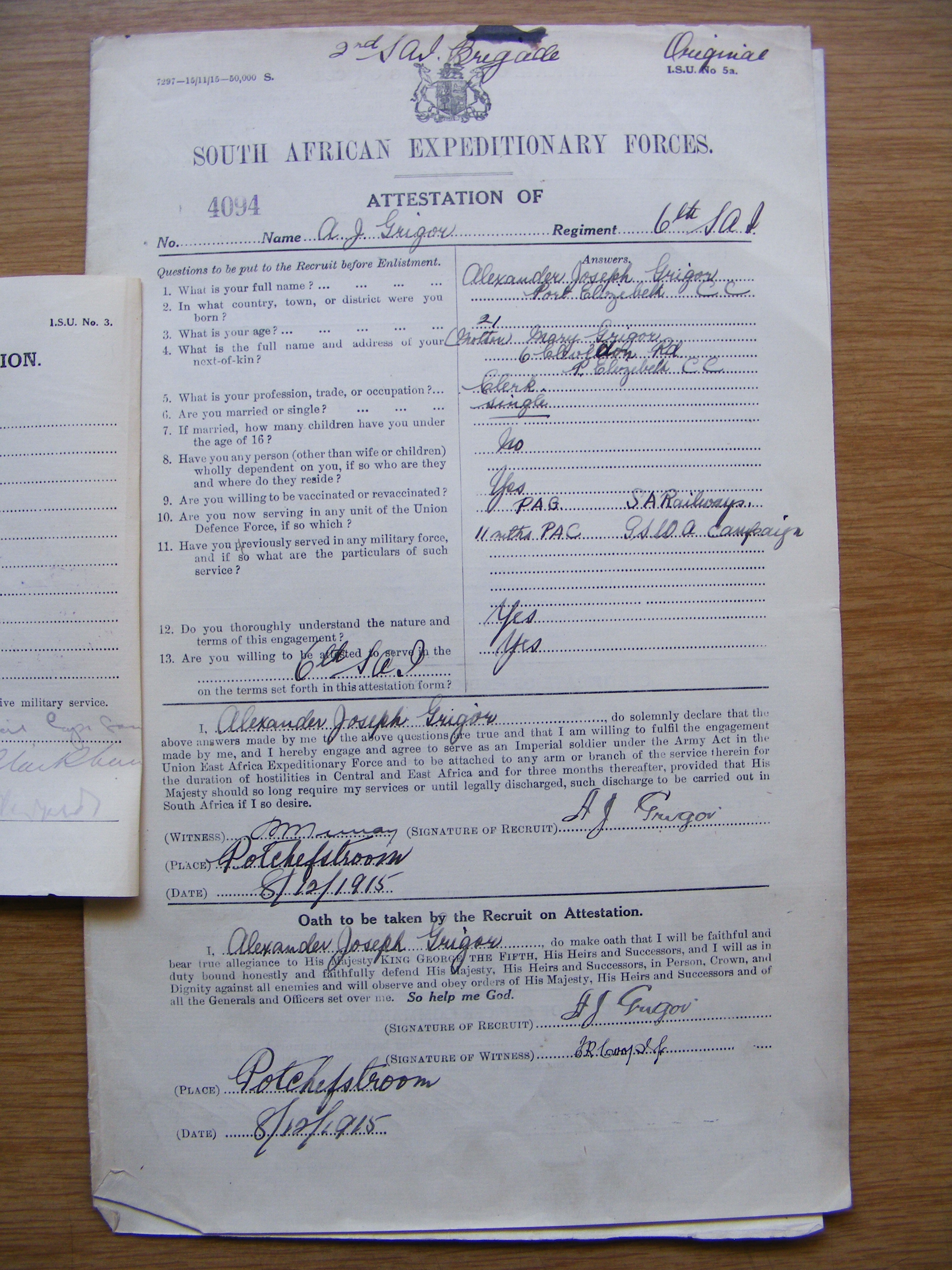 Son of Mr. William H. M. and Mary Grigor, of Camerons Glen, Bedford, Cape Province. Born at Port Elizabeth.