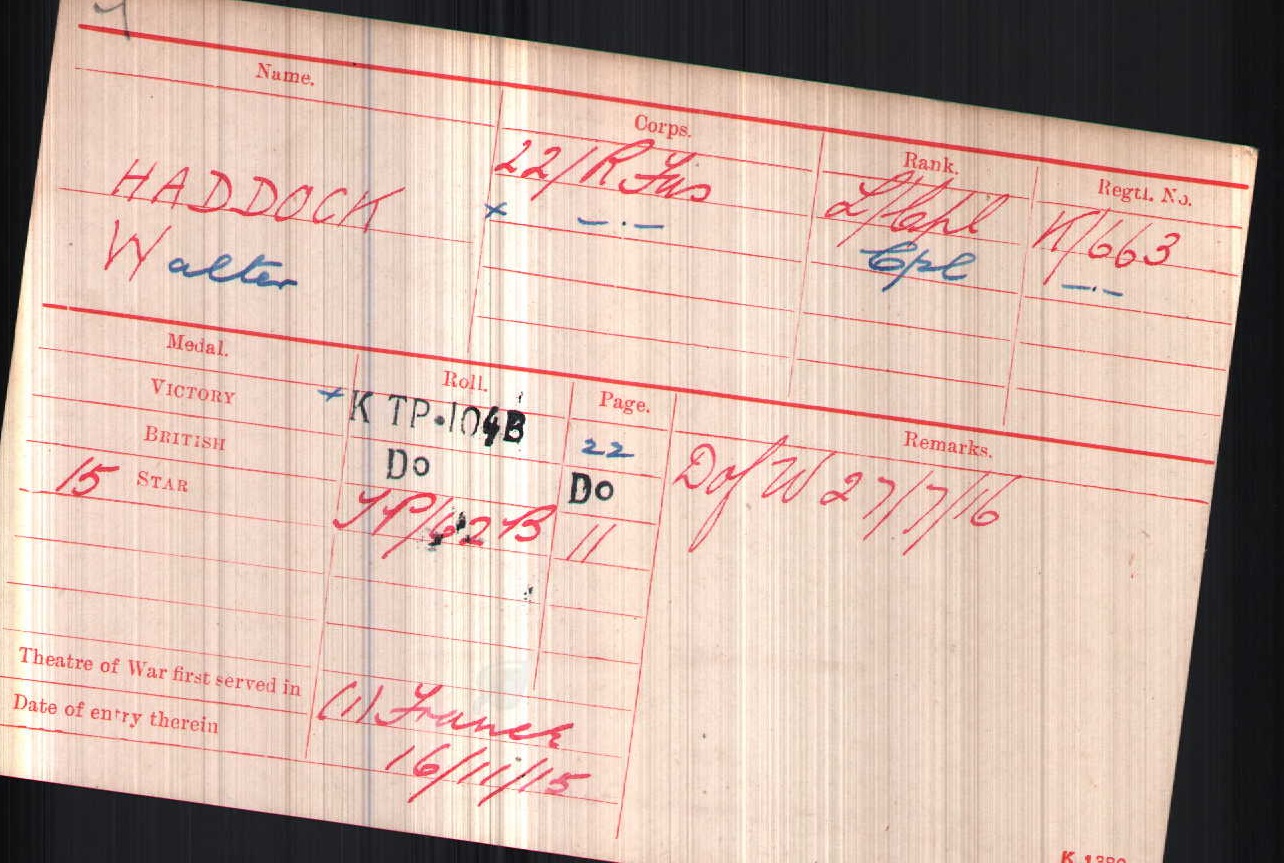 Son of William Haddock, of 74, Greyswood St., Streatham, London. ref. South African Roll of Honour 1914-1918