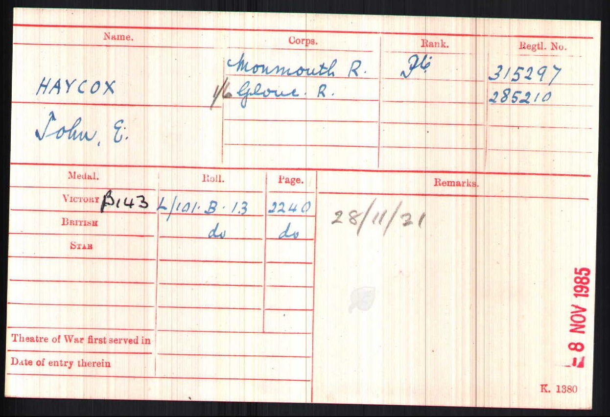 Husband of Lucy Haycox, of "Uriconium," De Villiers St., Cape Town, South Africa.