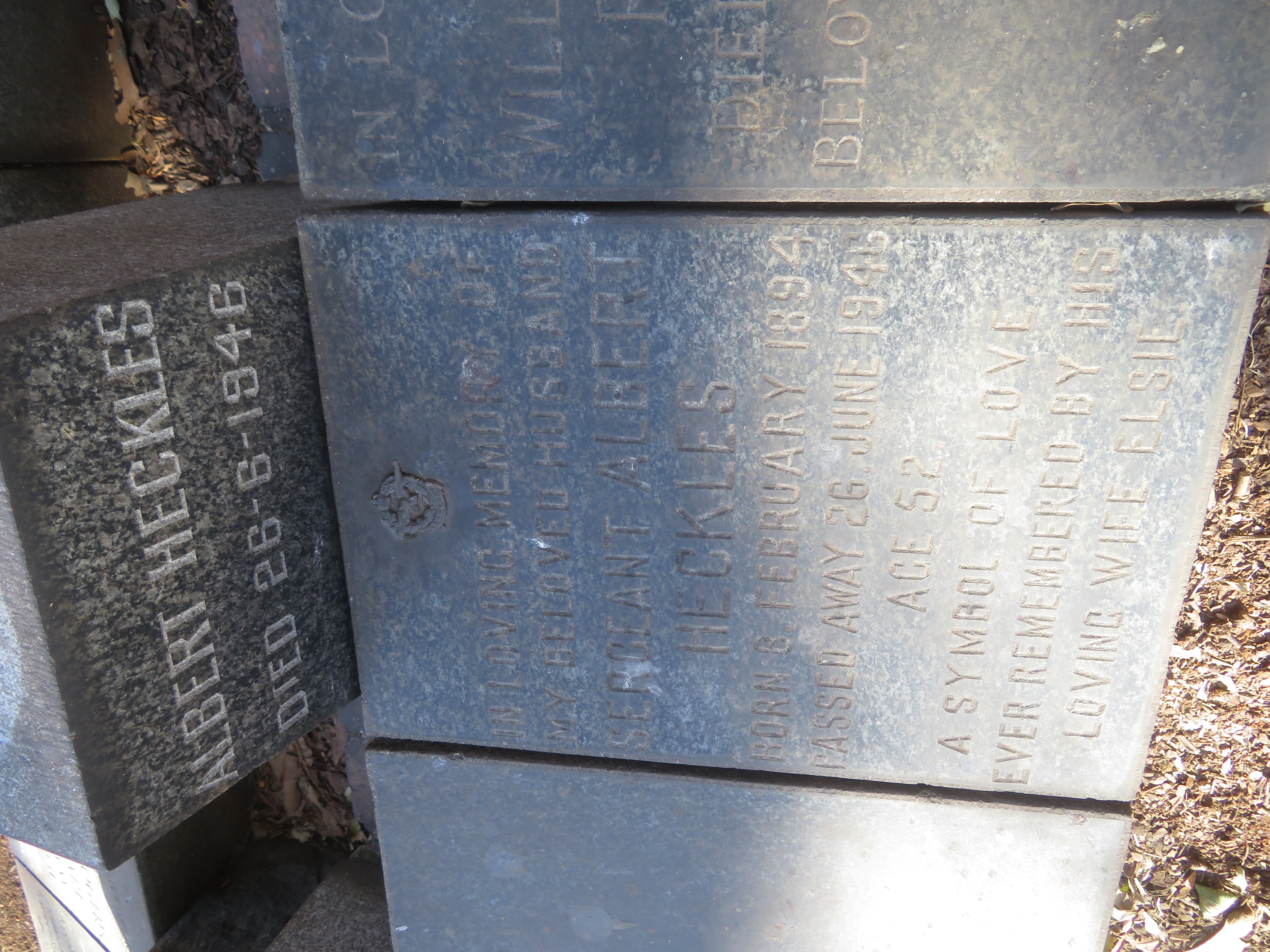 Husband of Elsie Isobel Heckles, of Johannesburg. Commemoration stone in Johannesburg (Braamfontein) Cemetery Cremation panels