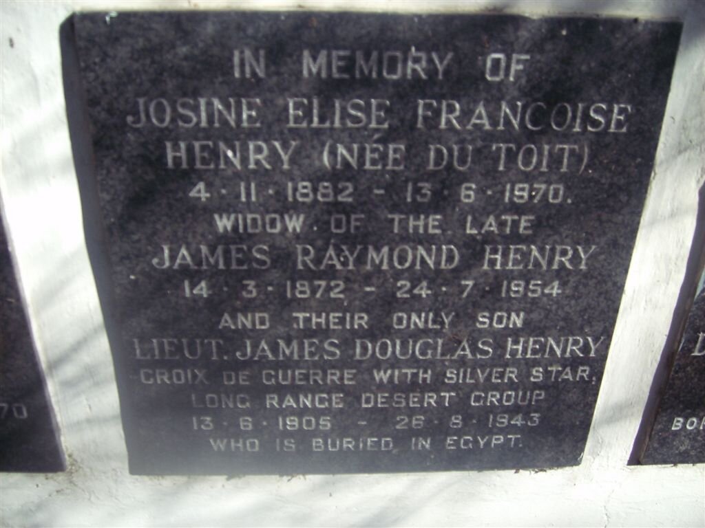 Son of James Raymond and Josine Elise Francoise Henry, of Newlands, Cape Town, South Africa. South African and Rhodesian Government Surveyor. Commemoration stone in Cape Town (Maitland) Cemetery