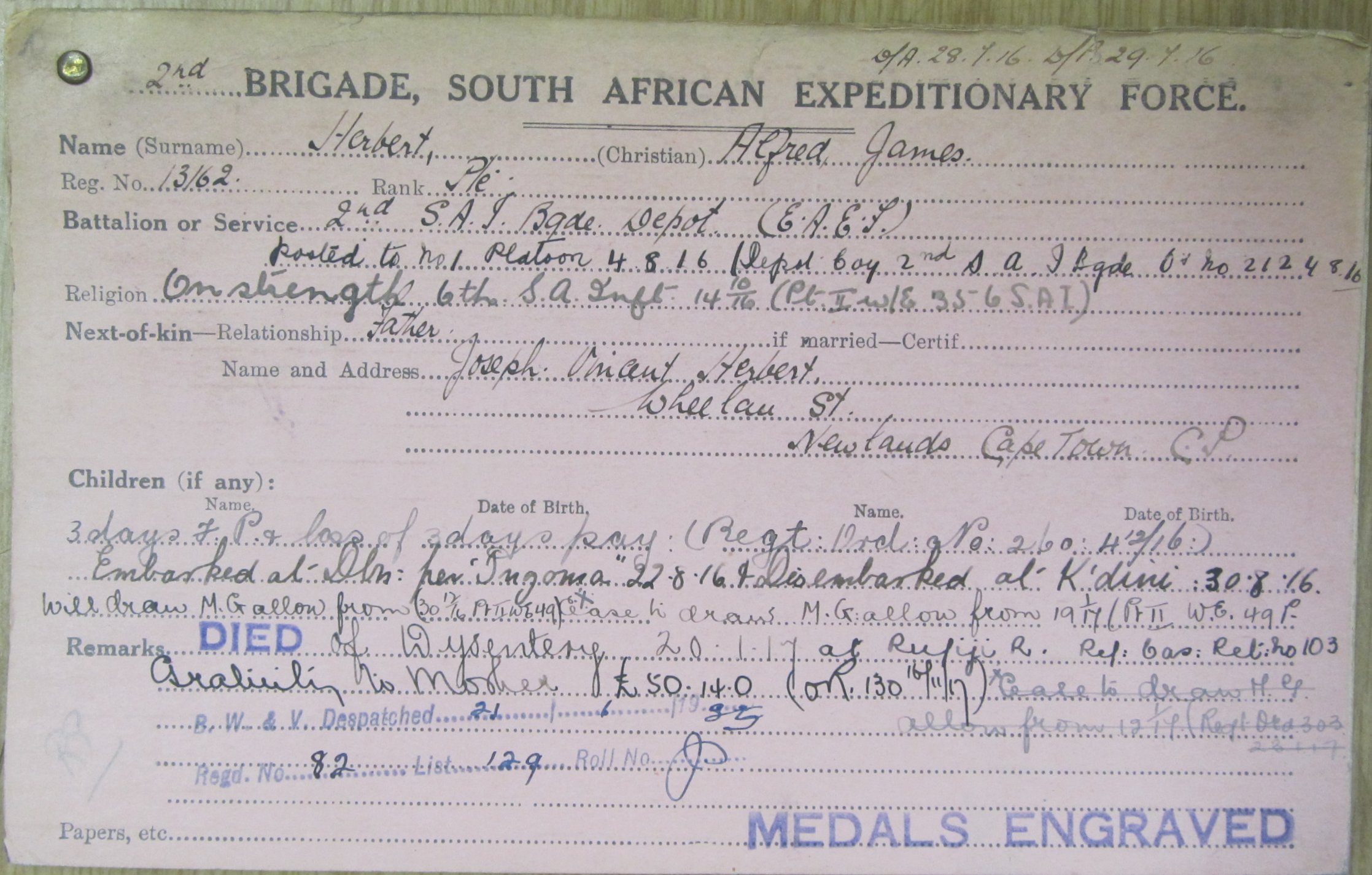 Son of Mr. Joseph Vincent and Mrs. E. S. Herbert, of 14, Whelan St., Newlands, Cape Province.